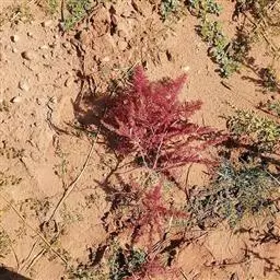 茎圆形,直径0.5-1mm,表面棕黑色,具纵棱,多中空。叶片半月形,边缘有多数棕色的丝毛状物;叶柄细长。茎顶常具花或小蒴果。气微,味甘。