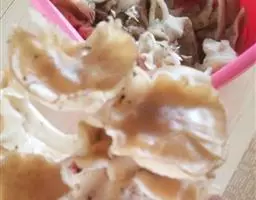 (2)将材料(2)分别处理好,以鹅汤煮熟,再用调味料(B)芶芡,淋在鹅肉上即可上桌。