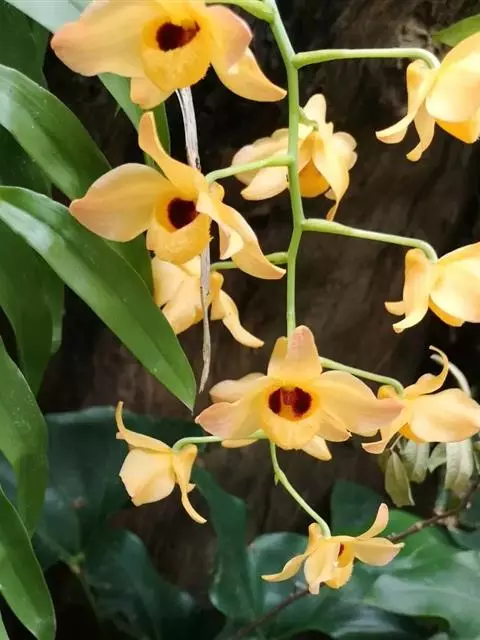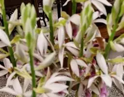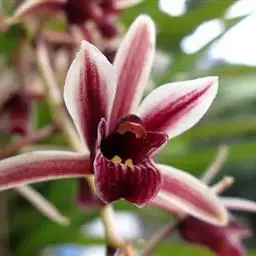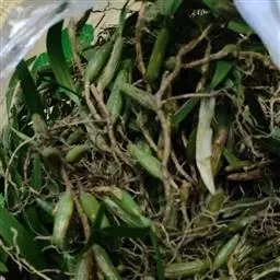带唇兰:假鳞茎暗紫色,圆柱形,罕为卵状圆锥形,被膜质鞘,顶生1枚叶。叶狭长圆形或椭圆状披针形。…