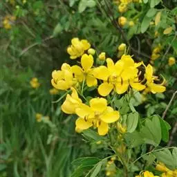 望江南(学名:Senna occidentalis (Linnaeus) Link)是豆科、决明属植物。直立、少分枝的亚灌木或灌木,无毛,高0.8-1.5米;枝带草质,有棱;根黑色;叶长约20厘米;叶柄近基部有大而带褐色、圆锥形的腺体1枚;小叶柄长1-1.5毫米;托叶膜质;花数朵组成伞房状总状花序,腋生和顶生,长约5厘米;苞片线状披针形或长卵形,长渐尖,早脱;花长约2厘米;花瓣黄色,外生的卵形;雄蕊7枚发育,3枚不育,无花药;荚果带状镰形,褐色;果柄长1-1.5厘米;种子30-40颗,种子间有薄隔膜。