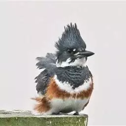 棕腹鱼狗身长38 - 42 cm ,体重305-341 g。主体羽毛蓝色。头顶的冠羽竖起一个小尖峰…