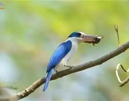 白腹鱼狗是佛法僧目翠鸟科的鸟类。前额和头顶部是深蓝色羽毛,底部和分尾完全是白色的,或多或少有浅黄色…