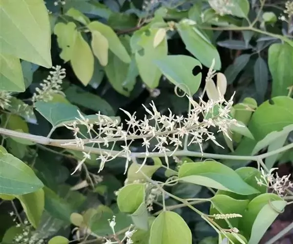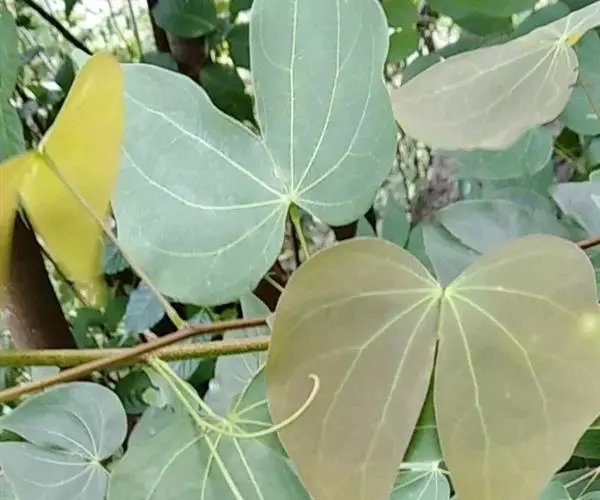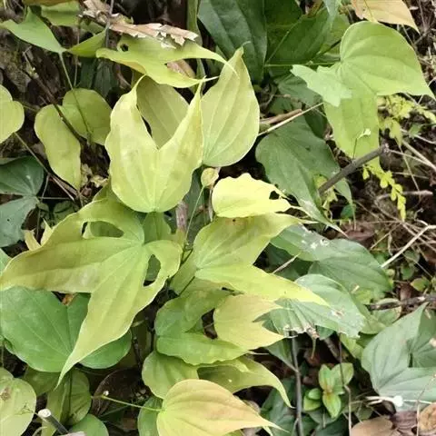藤本,有卷须;嫩枝和花序薄被紧贴的小柔毛。叶纸质,卵形或心形,长3-10厘米,宽2.5-6.5(-9)厘米,先端锐渐尖、圆钝、微凹或2裂,裂片长度不一,基部截形、微凹或心形,上面无毛,下面被紧贴的短柔毛,渐变无毛或近无毛,干时粉白褐色;基出脉5-7条;叶柄长1-2.5厘米,纤细,略被毛。