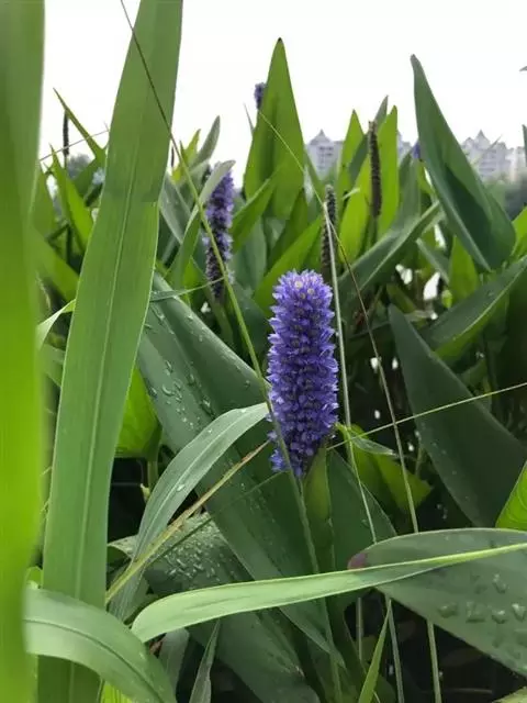 梭鱼草是雨久花科,梭鱼草属多年生挺水或湿生草本植物,株高可达150厘米,地茎叶丛生,圆筒形叶柄呈绿色,…