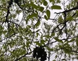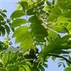 奇数羽状复叶生于萌发条上者长可达80厘米,叶柄长9-14厘米,小叶15-23枚,长6-17厘米,宽2-7厘米;生于孕性枝上者集生于枝端,长达40-50厘米,叶柄长5-9厘米,基部膨大,叶柄及叶轴被有短柔毛或星芒状毛;小叶9-17枚,椭圆形至长椭圆形或卵状椭圆形至长椭圆状披针形,边缘具细锯齿,上面初被有稀疏短柔毛,后来除中脉外其余无毛,深绿色,下面色淡,被贴伏的短柔毛及星芒状毛;侧生小叶对生,无柄,先端渐尖,基部歪斜,截形至近于心脏形;顶生小叶基部楔形。