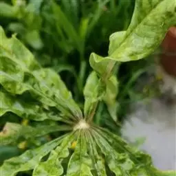 采用双株种植优于单株种植,上盆种植时很重要的一点是使植株心部的生长点露出基质的水平面,同时应尽量避免植株沾染基质。上盆时先在盆下部填充4-5厘米颗粒状的碎石物,然后加培养土2-3厘米,同时将植株正放于盆中央,使根系充分展开,最后填充培养土至盆面2-3厘米即可,但应露出植株中心的生长点及基部的小叶。种植后必须及时喷施菌剂,以防止疫霉病和腐霉病的发生。