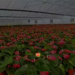 花烛不耐强光,全年宜在适当遮阴的环境下栽培,即选择有保护性设施的温室栽培。春、夏、秋季应适当遮阴,尤其是夏季需遮光70%。阳光直射会使其叶片温度比气温高,叶温太高会出现灼伤、焦叶、花苞褪色和叶片生长变慢等现象。