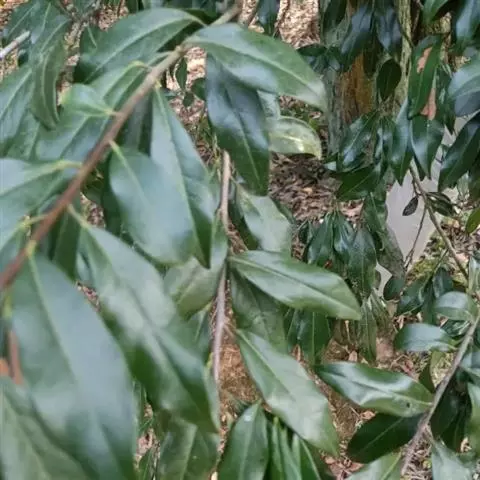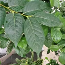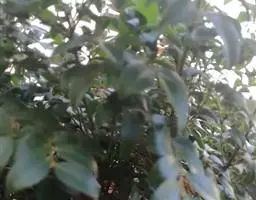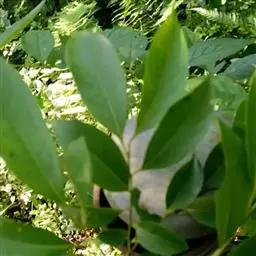 叶纸质,卵状椭圆形至倒卵形或近圆形,通常较大,长5-18厘米,宽2.8-9厘米,先端渐尖或钝,基部楔形,钝,圆形或近截形,很少为心形,新叶疏生柔毛,老叶上面有光泽,深绿色,无毛,下面绿色,有柔毛或无毛,中脉在上面凹下,有微柔毛,在下面凸起,侧脉每边5-7条,上面平坦或稍凹下,下面略凸起,下部的脉较长,上部的较短,向上斜生,稍弯,将近叶缘网结,小脉纤细,在上面平坦或微凹下,连结成小网状;叶柄长8-20毫米,变无毛,上面有浅槽。