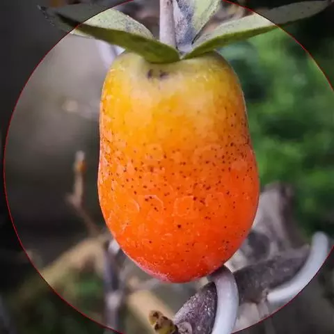 大秋 原产日本,国家资源圃于1997年从日本直接引进。该品种果实特大,平均重230克,最大果重368克,高馒头形,橙红色。果肉黄色均一,无褐斑。肉质酥脆,口感甜爽,汁多味浓,糖度达24%,品质极上。是日本近年育成的少有的大果、优质完全甜柿品种。有极高的商品性。在陕西省10月上中旬成熟。但必须强调,由于该品种属于富有系品种,引入中国后,与软枣亲和力极差,高接时应接在大柿树上,而不要接在软枣上;育苗时也必须接于本砧或以柿品种为中间砧的苗木上。另外,如成熟较早的完全甜柿品种伊豆、新秋;中熟品种前川次郎、兴津20;晚熟品种晚御所、骏河以及中国原产的罗田甜柿、秋焰、甜宝盖等甜柿品种在一定小气候下也可栽培生产。