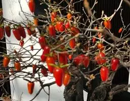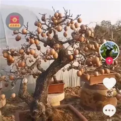 果形种种,有球形,扁球形,球形而略呈方形,卵形,等等,直径3.5-8.5厘米不等,基部通常有棱,嫩时绿色,后变黄色,橙黄色,果肉较脆硬,老熟时果肉变成柔软多汁,呈橙红色或大红色等,有种子数颗;种子褐色,椭圆状,长约2厘米,宽约1厘米,侧扁,在栽培品种中通常无种子或有少数种子;宿存萼在花后增大增厚,宽3-4厘米,4裂,方形或近圆形,近平扁,厚革质或干时近木质,外面有伏柔毛,后变无毛,里面密被棕色绢毛,裂片革质,宽1.5-2厘米,长1-1.5厘米,两面无毛,有光泽;果柄粗壮,长6-12毫米。