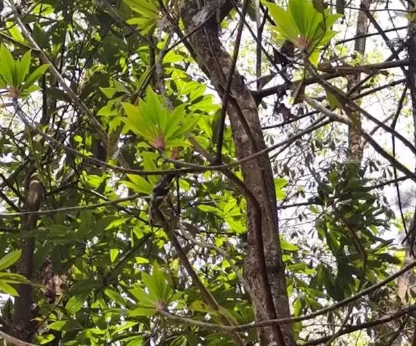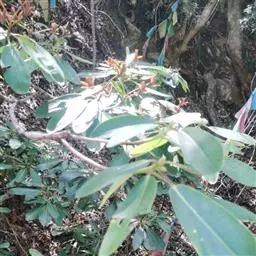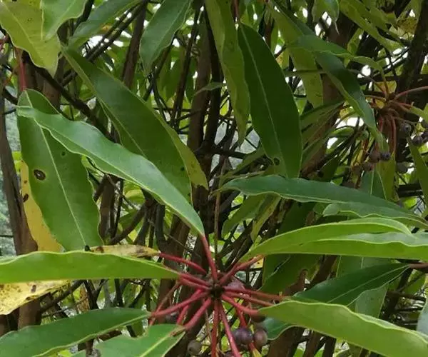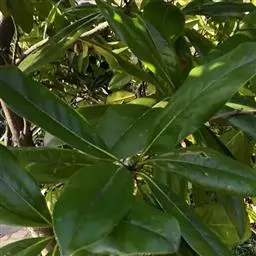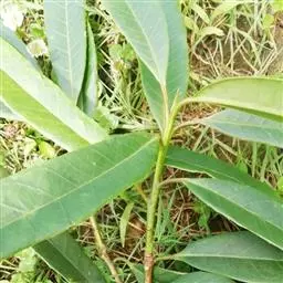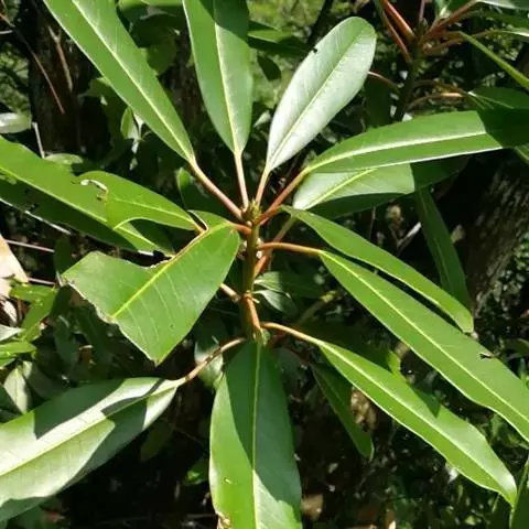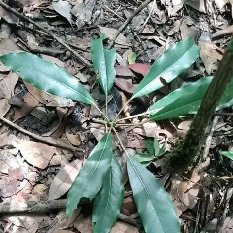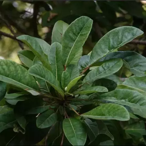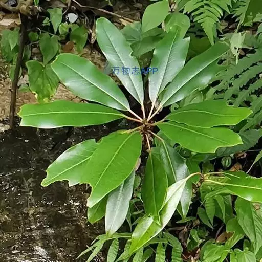 交让木(学名:Daphniphyllum macropodum Miq.)是虎皮楠科,虎皮楠属灌木或小乔木,高可达10米;小枝粗壮,暗褐色,叶革质,叶片长圆形至倒披针形,叶面具光泽,叶背淡绿色,无乳突体,侧脉纤细而密,叶柄紫红色,粗壮,雄花、雌花花萼不育;花丝短,子房卵形,花柱极短,柱头外弯,扩展。果椭圆形,暗褐色,果梗纤细。3-5月开花,8-10月结果。