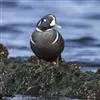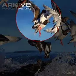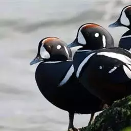 白腹麻鸭(图5) 2龄时性成熟。通繁殖期4-6月。对的结合较为固定。交配在水中或地上进行,交配前雌鸭颈部向前伸直,头低向地面,并发出‘嘎嘎’叫声,来回在雄鸭周围走动,雄鸭此时也伸长脖子走向雌鸭,随后衔住雌鸭肩羽,上到雌鸭背上进行交配。营巢于天然洞穴或其他动物废弃洞穴、墓穴以及山间和湖泊岛屿上的土洞和石穴中。巢由少量枯草和大量绒羽构成。窝卵数8-10枚。由雌鸟单独承担,雄鸟在巢附近警戒,遇危险时则高声鸣叫以示警,有时雄鸟还飞向入侵者作出攻击姿势进行恐吓。雌鸟离巢时用绒羽将卵盖住,然后才随雄鸟一起外出觅食。 白腹麻鸭(图6) 觅食结束后雄鸟又伴随雌鸟飞回巢中,然后才离开雌鸟栖息于巢附近警戒。孵化期27-30天,5月初即有雏鸟孵出。已孵出的雏鸟和亲鸟一起游泳在水塘和小溪中,见人后雏鸟立刻藏入岸边草丛。雏鸟早成性,孵出后即长满了绒羽,并会游泳和潜水。也有资料说雏鸟孵出后通常由亲鸟从巢区背负到水域。在水中游泳时雏鸟亦常爬到亲鸟背上玩耍,雏鸟在亲鸟带领下经过50天左右的雏鸟期生活后即具飞翔能力。