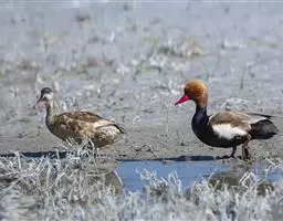 白腹麻鸭(图3) 栖息于江河、湖泊、河口、海岸及其附近的草原、荒地、沼泽、沙滩、农田和平原疏林等各类生境中,尤喜平原上的湖泊地带。主要在海边沙滩和咸水湖区。繁殖期成对生活,非繁殖期以家族群和小群生活,性机警,人难于接近。·