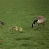 黑雁是雁形目鸭科黑雁属鸟类,又称黑鹅。头、颈、胸、嘴及脚黑褐色;虹膜褐色;背及两翼灰褐色;尾下覆羽白色;胸侧及胁部多近白色纹;颈部两侧各具一个特征性白色横纹,在颈前后断开,未能联成颈环。幼鸟颈部无白斑,而翅上多白色横纹。黑雁繁殖于北美洲、西伯利亚极地的苔原冻土带,越冬于南方沿海的草地及河口。在中国安徽也能见其身影。主要栖息在海湾、海港及河口等地,在冬季里大多出现在有耐碱植物生长的湖泊和水库周围,也出现在周围地势低洼的咸水湖和沿海地区,偶尔还出现在农田地里。性活跃,喜集群,常成群活动和栖息。主要以植物性食物为食。繁殖期在6-8月,雌鸟孵卵,雄鸟通常在距巢100米以内范围内守候警诫。雌鸟孵卵时常将头和颈朝地面平伸出去以降低高度。孵化期为22-28天。黑雁被列入中国林业局2000年8月1日发布的《国家保护的有益的或者有重要经济、科学研究价值的陆生野生动物名