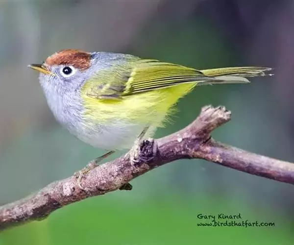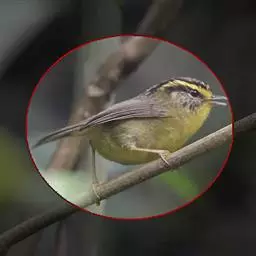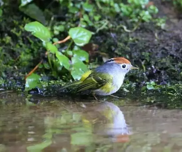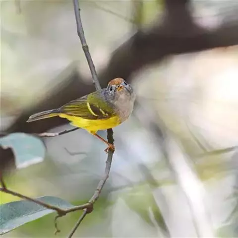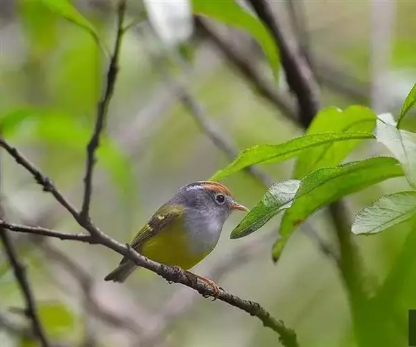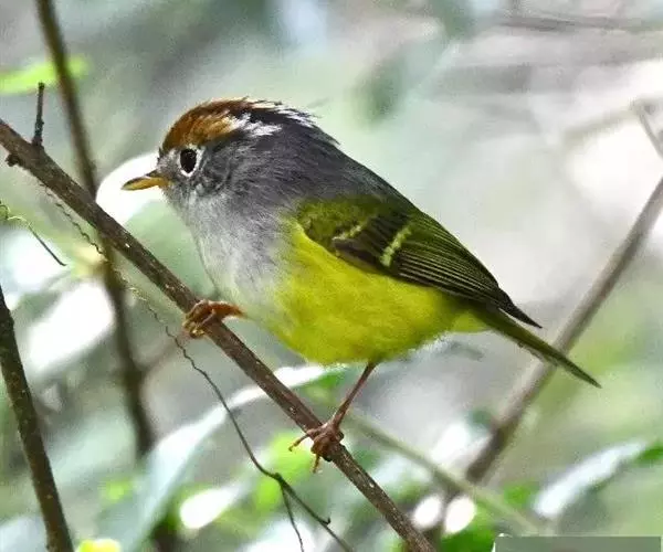 全长75-100毫米。前额、头顶至后枕棕栗色,侧冠纹前部较狭呈灰黑色,向后逐渐变粗呈黑色,枕侧杂白色斑纹;眼先灰白,眼圈白色;颊和耳羽灰,杂灰黑色细纹;上背和肩灰色,下背橄榄绿,腰和尾上覆羽鲜黄;翅上覆羽、飞羽和尾羽黑褐,外缘橄榄绿色,大中覆羽具淡黄色端斑,形成两道翼斑。颏、喉和胸灰色,中央较淡呈灰白色,延伸至上腹部中央,上腹部两侧和下腹部、胁部、翅下覆羽、腋羽及尾下覆羽亮黄绿色;最外侧两对尾羽内翈纯白色。