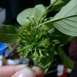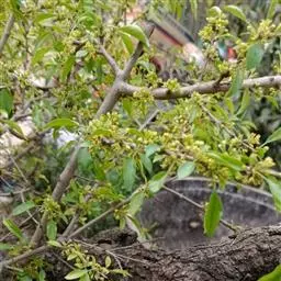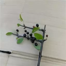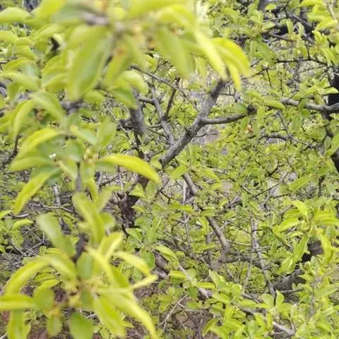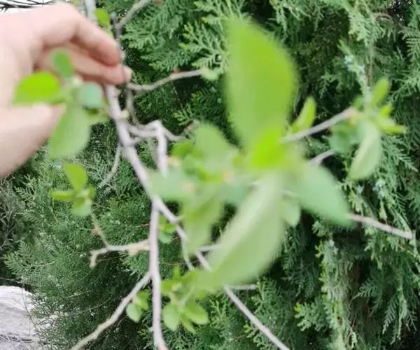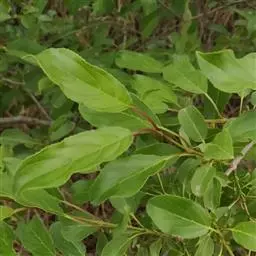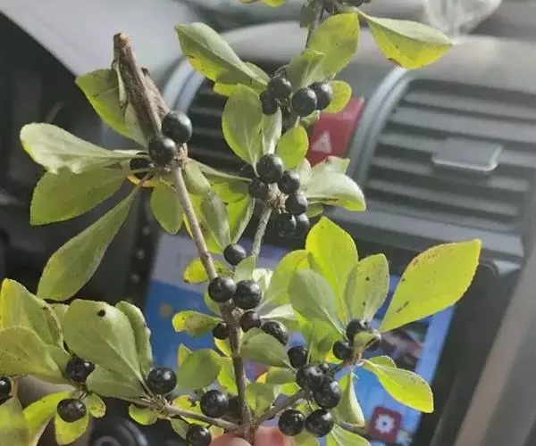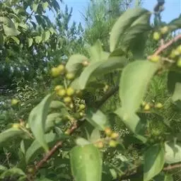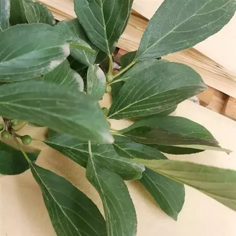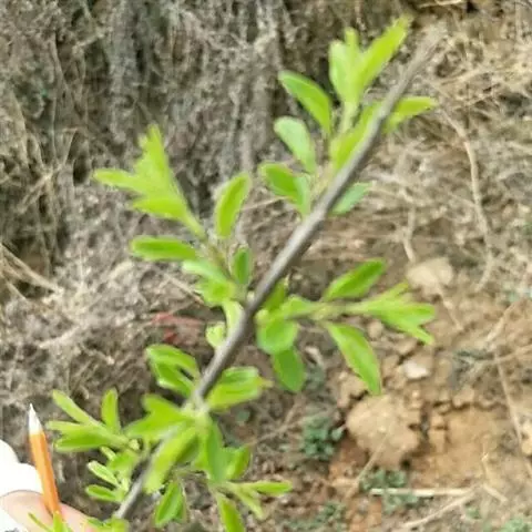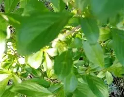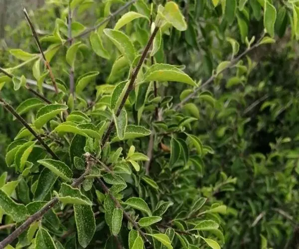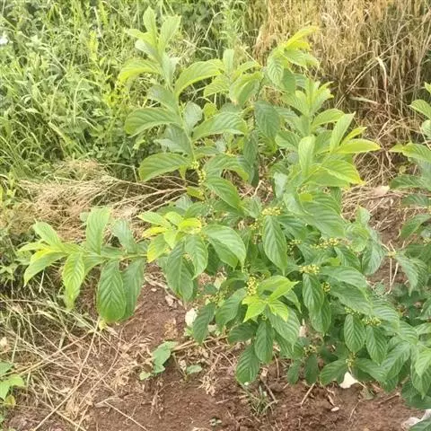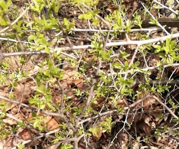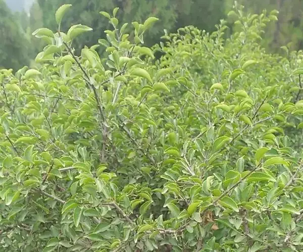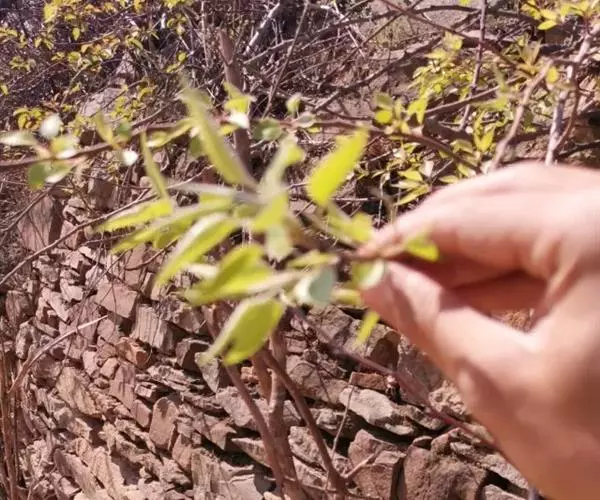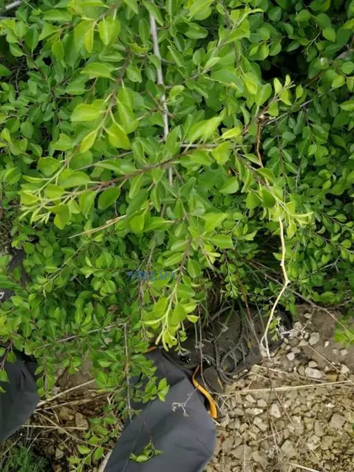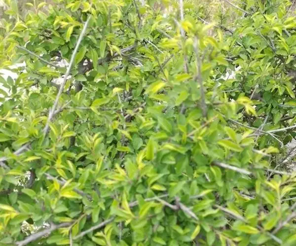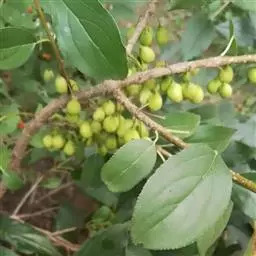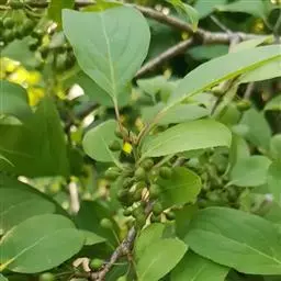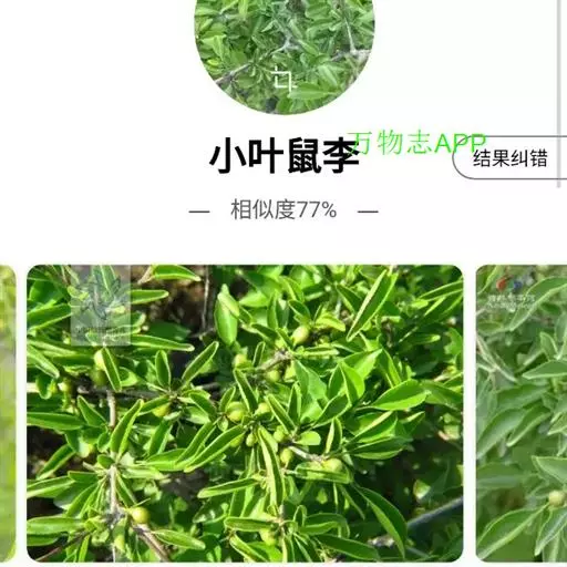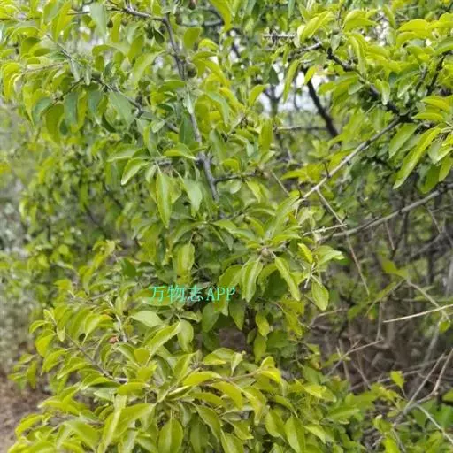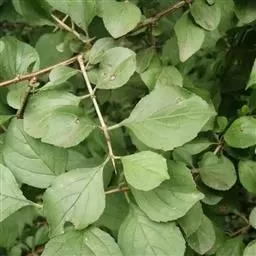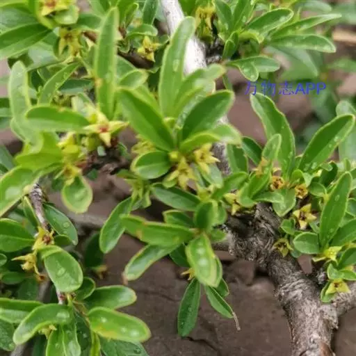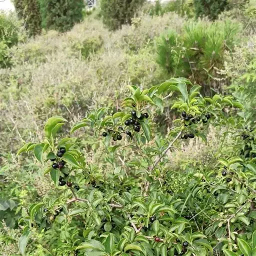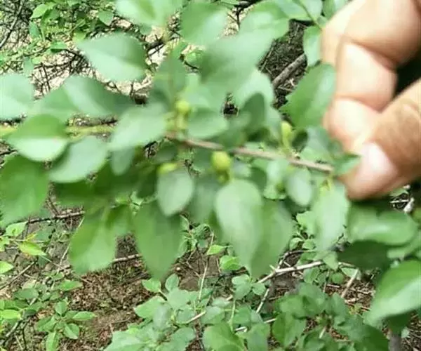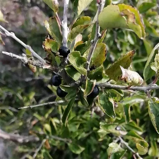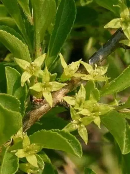小叶鼠李,又名麻绿、大绿、驴子刺、叫驴子刺。灌木,高1.5-2m;小枝对生或近对生,紫褐色,初时被短柔毛,后变无毛,平滑,稍有光泽,枝端及分叉处有针刺;芽卵形,长达2mm,鳞片数个,黄褐色。叶纸质,对生或近对生,稀兼互生,或在短枝上簇生,菱状倒卵形或菱状椭圆形,稀倒卵状圆形或近圆形,长1.2-4cm,宽0.8-2(3)cm,顶端钝尖或近圆形,稀突尖,基部楔形或近圆形,边缘具圆齿状细锯齿,上面深绿色,无毛或被疏短柔毛,下面浅绿色,干时灰白色,无毛或脉腋窝孔内有疏微毛,侧脉每边2-4条,两面凸起,网脉不明显;叶柄长4-15mm,上面沟内有细柔毛;托叶钻状,有微毛。花单性,雌雄异株,黄绿色,4基数,有花瓣,通常数个簇生于短枝上;花梗长4-6mm,无毛;雌花花柱2半裂。核果倒卵状球形,直径4-5mm,成熟时黑色,具2分核,基部有宿存的萼筒;种子矩圆状倒卵圆形,褐色,背侧有长为种子4/5的纵沟。花期4-5月,果期6-9月。