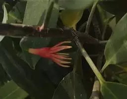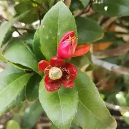 萼片5,基部合生,卵形,先端钝,两面被毛;花瓣5,基部近离生,卵状长圆形,长1.2-1.5厘米;鳞片离生,线形,几与花瓣等长,外面近无毛,边缘具睫毛;雄花:2-3朵,呈假聚伞花序或总状花序,长3-4厘米;雄蕊5,花丝基部加粗,顶端渐尖,花药长圆形;雌花单生或2朵簇生,黄绿色或红色,有芳香;花梗无毛;退化雄蕊5,无花药;子房卵形或倒卵形,被赭色刚毛,侧膜胎座5,胚珠10-15颗,花柱先端有毛,柱头5,帽状。浆果球形,直径8-12厘米,果梗初期密被黑色毛,逐渐脱落近无毛,外果皮木质,性脆;种子多数。花期9月,果期11月至次年6月。