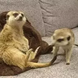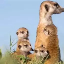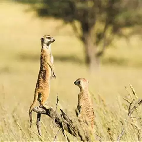 狐獴(学名:Suricata suricatta),头尾长42-60厘米,是一种小型的哺乳动物。体形粗笨。四肢短,后足仅具4趾,趾间有蹼;尾长而圆,约为体长的2/3,上被小鳞片及稀疏的毛。背部毛色黑褐,杂以黄色毛尖,绒毛为深咖啡色;尾两色,上面棕黑色,尾基部和下部为淡黄色。