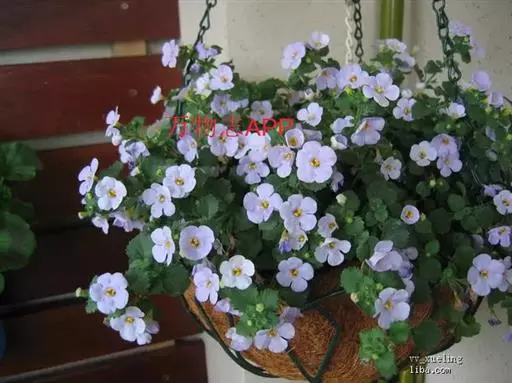 百可花是一种攀缘性花卉,它基部分枝性好,花朵娇小可爱,花色有白色、紫色等,叶片紧密。百可花是一种喜欢光照的植物,在吊篮、花盆或花境中都表现良好,为优良的秋季销售花卉。百可花耐热性并不是很强,在吊盆中甚至不能安然度过高温的夏季。夏季应与其他植物配植,例如秋海棠、长春花等花卉,以弥补夏季干枯后的空白。