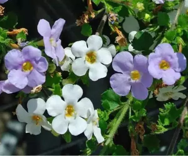 百可花(Bacopa)是一种攀缘性花卉,它基部分枝性好,花朵娇小可爱,花色从白色到紫色,叶片紧密,喜光照,在吊篮、花盆和花境中表现都非常良好,为优良的秋季销售花卉。