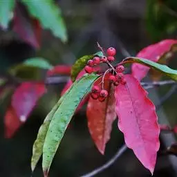 火棘 H. L. Li)是蔷薇科火棘属常绿灌木,老枝呈暗褐色;叶片呈倒卵形,边缘有钝锯齿,齿尖向内弯,…