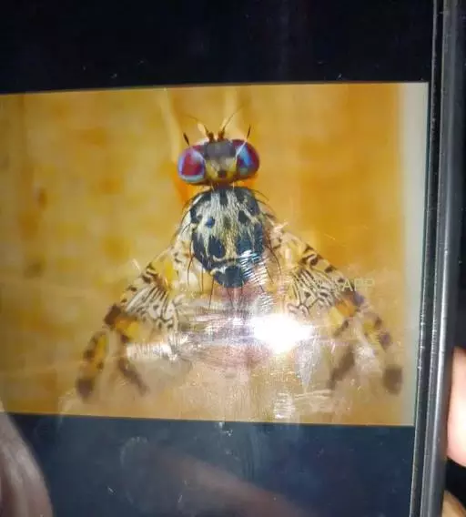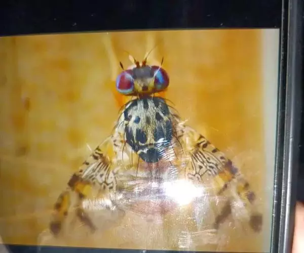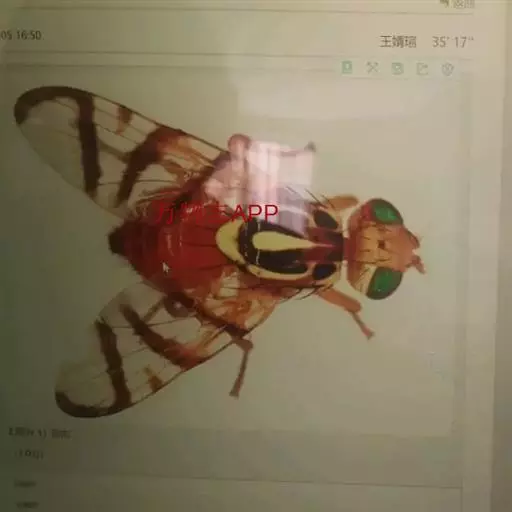 地中海实蝇,一种毁灭性的水果害虫,是实蝇科昆虫的一种。原产非洲热带地区,后分布到世界许多地区 现已分布在80多个国家和地区,此种害虫有250多种寄主,主要危害柑桔、苹果、梨等水果和茄科蔬菜。为重要检疫性害虫。成虫体长 4~5 毫米,翅长4.5 毫米。体和翅上有特殊颜色。额黄色,头顶黄色略具光泽。此虫极具有破坏水果的危害性。