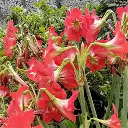 朱顶红 H. E. Moore),石蒜科属多年生草本植物,鳞茎近球形,并有匍匐枝;叶鲜绿色,…