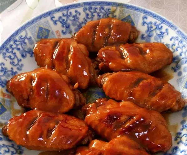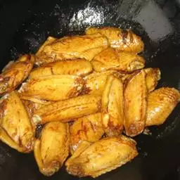用料鸡翅500克、可乐一罐。将鸡翅洗净后切成块,然后用盐和料酒腌制片刻,将腌制好的鸡翅放入6-7成热的油中炸制成金黄色后捞出。锅中留少许油,将姜块、葱段稍煸,下鸡翅,加盐、酱油、白糖、料酒及可乐,旺火烧开,改小火烧透入味,转用大火收汁,待汁水稠浓后,滴入香油即可出锅。