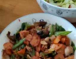回锅肉,是四川传统菜式中家常菜肴的代表菜之一,属于川菜。其制作原料主要有猪后臀肉、青椒、蒜苗等,…