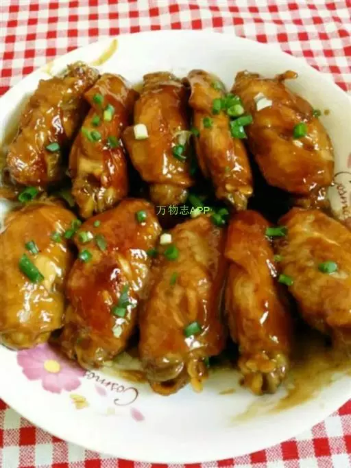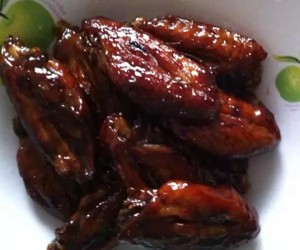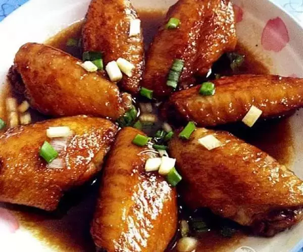 可乐鸡翅 材料:8只鸡翅、1小勺味精、1瓶可乐、1/4杯酱油、1大匙糖、葱2根切段、几个干辣椒、1小勺料酒。做法:除鸡翅外,所有材料混合成腌料。鸡翅切成两半,浸入腌料中,腌40分钟左右。腌好的鸡翅入热油锅过油,至外皮金黄即可起锅。炸好的鸡翅加腌料,置另一锅用大火煮至滚后,转小火再煮约半小时即可。