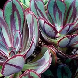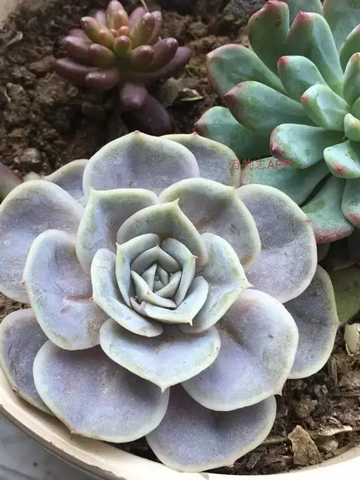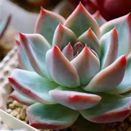 大和锦是景天科拟石莲花属的多肉植物。肉质叶排成紧密的莲座状,广卵形至散三角卵形,背面突起呈龙骨状,…