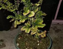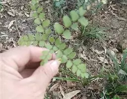 叶疏生,二形:不育叶柄长20-50厘米,基部棕褐色,略呈三角形,向上深禾秆色,圆柱形,粗2-3毫米,上面有浅纵沟,疏被棕色鳞片,叶片阔卵状三角形或阔卵形,长宽相等或长略过于宽,长13-30厘米,宽12-22厘米,先端羽状半裂,向下为一回羽状,羽片5-8对,相距1.5-3厘米,披针形,基部一对或下部1-2对较大,长8-12厘米,宽1.5-3厘米,有短柄,边缘波状浅裂,向上的无柄,基部与叶轴合生,边缘波状或近全缘,叶轴两侧具狭翅,叶脉明显,网状,网眼无内藏小脉,近叶边的小脉分离,叶草质,干后暗绿色或浅棕绿色,幼时略被小鳞片,成长后光滑无毛;能育叶低于不育叶,叶柄长18-45厘米,较不育叶柄粗壮,叶片强度狭缩,长15-25厘米,宽2-4厘米,二回羽状,羽片狭线形,与叶轴成锐角而极斜向上,小羽片紧缩成小球形,包被孢子囊群,彼此分离,排列于羽轴两侧,孢子囊群圆形,着生于由小脉先端形成的囊托上,囊群盖膜质,紧包着孢子囊群。染色体2n=74。