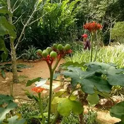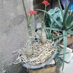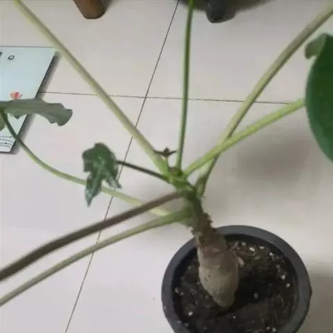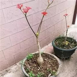 瓶干树又名佛肚树,学名是Jatropha podagrica Hook.,瓶干树的原生地是澳洲的昆士兰及南威尔斯的干燥地带,胖胖的体型被认为是对干旱气候的适应。