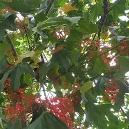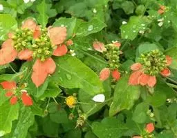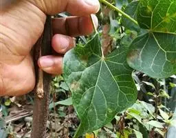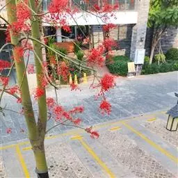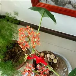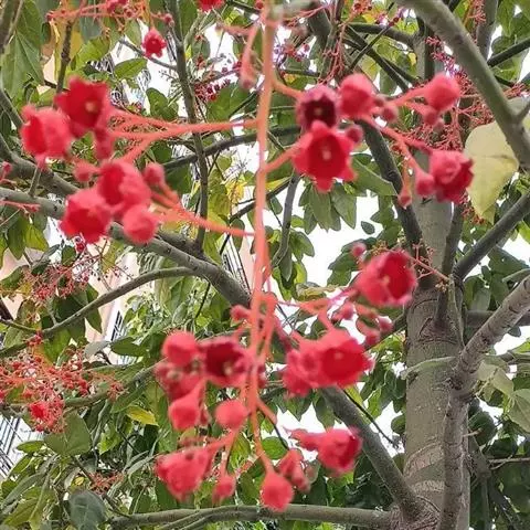直立灌木,不分枝或少分枝,高0.3-1.5米,茎基部或下部通常膨大呈瓶状;枝条粗短, 北部湾广场瓶干树 肉质,具散生突起皮孔,叶痕大且明显。叶盾状着生,轮廓近圆形至阔椭圆形,长8-18厘米,宽6-16厘米,顶端圆钝,基部截形或钝圆,全缘或2-6浅裂,上面亮绿色,下面灰绿色,两面无毛;掌状脉6-8,其中上部3条直达叶缘;叶柄长8-16厘米,无毛;托叶分裂呈刺状,宿存。花序顶生,具长总梗,分枝短,红色,花萼长约2毫米,裂片近圆形,长约1毫米;花瓣倒卵状长圆形,长约6毫米,红色;雄花:雄蕊6-8枚,基部合生,花药与花丝近等长;雌花:子房无毛,花柱3枚,基部合生,顶端2裂。蒴果椭圆状,长13-18毫米,直径约15毫米,具3纵沟;种子长约1.1厘米,平滑。花期几全年。