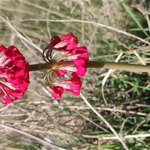 叶柄极短或与叶片近等长,具阔翅。花葶直立,高20-45厘米,果时长可达60厘米,具伞形花序2-6轮,每轮具3-10花,苞片线状披针形,长5-10毫米;花梗长1-2厘米,开花期稍下弯,果时直立;花萼杯状,长约5毫米,分裂约达全长的1/3,裂片三角形或长圆形,先端稍钝;花冠深红色或紫红色,冠筒口周围黄色,冠筒长9-11毫米,喉部具明显的环状附属物,冠檐平展,直径1.8-3厘米,裂片倒心形,长8-9.5毫米,宽6-8毫米,先端通常深2裂,长花柱花:雄蕊着生处距冠筒基部约2毫米,花柱长约6.5毫米;短花柱花:雄蕊距冠筒基部约6.5毫米着生,花柱长2毫米。蒴等长于或稍长于花萼。花期5-7月,果期9-10月。