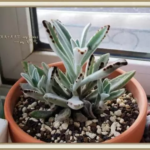 月兔耳应养在全日照的阳光房里。生长期需保持土壤微湿,避免积水。土壤可用了煤渣混合泥炭、少量珍珠岩,比例大概6:3:1。月兔耳在盆土干燥的情况下能耐零下2℃左右的低温,是室内的温度,非露天。整个冬季基本断水,5度以下就要开始慢慢断水了。