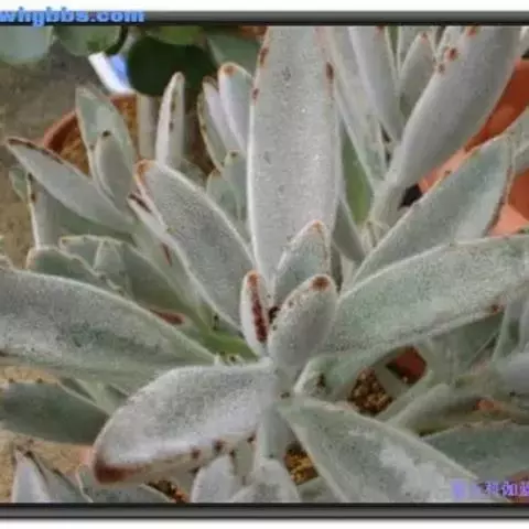 褐斑伽蓝是景天科、伽蓝菜属多年生肉质草本植物或小灌木。全株灰白色,密布白色茸毛。叶片长卵形,…