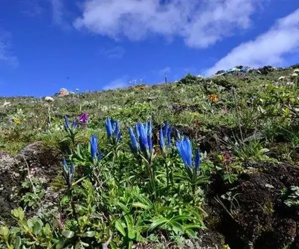 五岭龙胆是龙胆科龙胆属多年生草本;茎短,具多数较长分枝;花枝多数;叶线状披针形或椭圆形状披针形,…