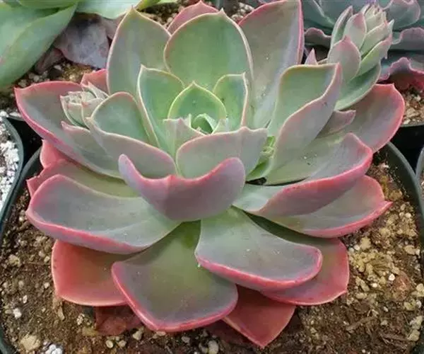女雏是景天科石莲花属的多肉植物。特征是小巧的株形和橙粉色叶缘。极易生侧芽,…