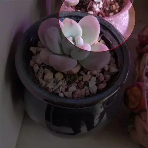 4.红卷绢又名“大赤卷绢”,景天科长生草属植物,椭圆形肉质叶排列密集,呈放射状生长,尖端微向外侧弯,叶端密生白色短毛,植株中心尤为密集,好似蜘蛛网。叶绿色,在冷凉且阳光充足的条件下呈紫红色。