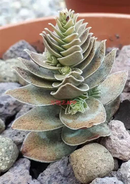 2.子持莲华,景天科瓦松属植物,肉质叶灰蓝色或灰绿色,圆形或长匙形,表面光滑,全缘,被有白粉。茎纤细,顶端长有莲座状叶丛。