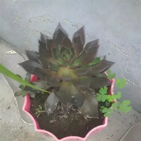 形态特征:黑王子属多年生肉质草本植物。植株具短茎, 肉质叶排列成标准的莲座状,生长旺盛时其叶盘直径可达20厘米,叶片匙形,稍厚,顶端有小尖,叶色黑紫。聚伞花序,小花红色或紫红色。