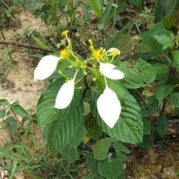 粉纸扇,茜草科玉叶金花属植物,半常绿灌木,株高1~3 m。叶对生,长椭圆形,顶端浙尖,基部楔形,全缘。…