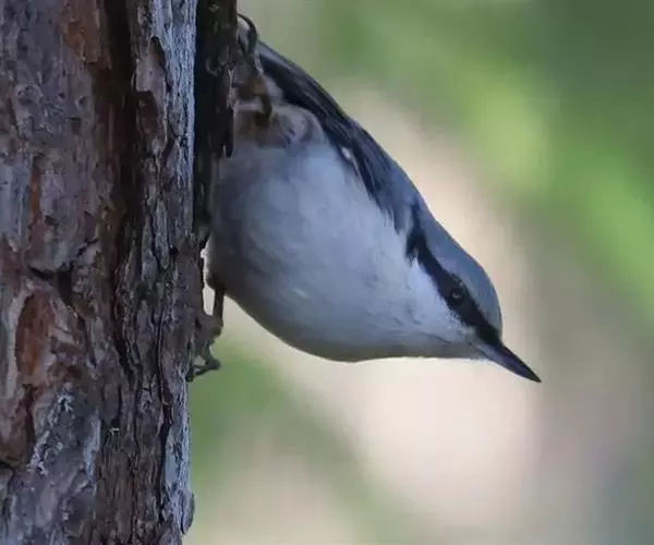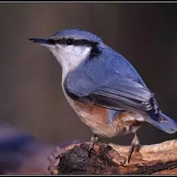 普通鳾(学名:Sitta europaea):是小型鸣禽,体长约13厘米,体重19-24克,体型似山雀,嘴细长而直,约1.5厘米。身体的背面为石板蓝色,具有一条明显的黑色贯眼纹沿头侧伸向颈侧,翅的飞羽为黑色。中央一对尾羽为蓝灰色,其余为黑色。颏喉、颈侧和胸部为白色,腹部两侧栗色,下腹土黄褐色。尖长的鸟喙蓝灰色。眼睛黑色。双腿橙棕色,长爪尖黑色。雌雄同色,雄性个体略大。