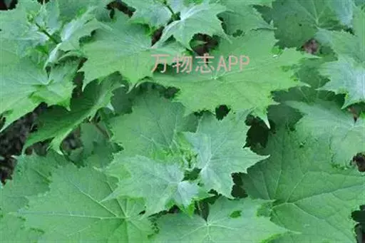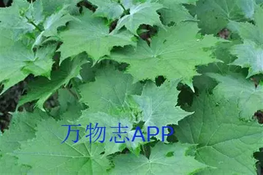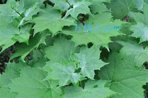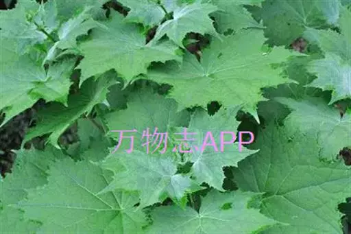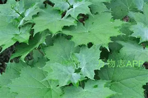叶生于茎下部的最大,圆心形,长和宽均10-20厘米,掌状7-10裂,裂片具粗齿,基部近心形,两面被糙伏毛,生于茎上部的叶渐较小,长、宽均3-7厘米,最上部的叶卵形或披针形,先端渐尖;叶柄生于茎最下部的最长,长达25厘米,生于茎上部的渐短以至于无柄。