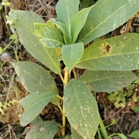 黄山梅 多年生草本,高80-120米。茎直立,近四棱形,无毛,略紫色。