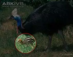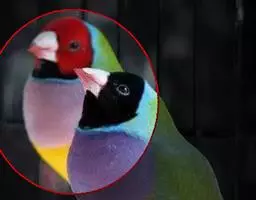 它们的雌雄可以从外观上分辨,母鸟的深栗 色区域界线很模糊 ,在脸部、下胸部及腹部的斑点是明亮的淡紫蓝色几乎 接近白色。幼鸟和成鸟的颜色相似,但是没有彩色斑块,嘴部是黑色的。在大约十周龄时,幼鸟会局部换毛。母鸟会变成接近白色,公鸟眼睛周围的羽毛会变成蓝紫色。一直到五个月大以後,它们会完全换羽成为成鸟的羽色。