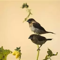 栗腹文鸟:小型鸟类,体长10-12厘米。嘴蓝灰色,基部粗厚,先端尖、呈圆锥状, 脚亦为蓝灰色,整个…