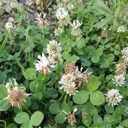 白车轴草,豆科车轴草属的多年生草本植物,茎贴地匍匐;叶柄直立,小叶心形,边缘具细齿,叶脉明显,…