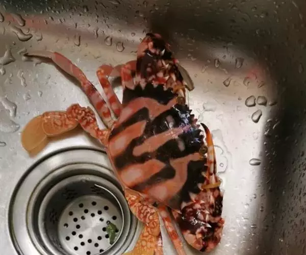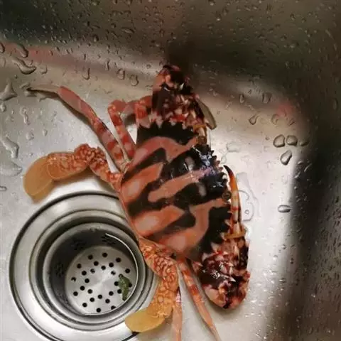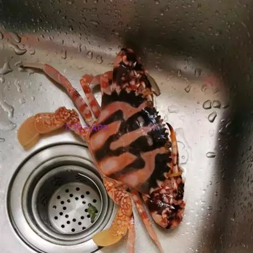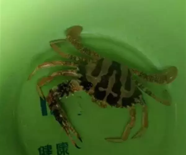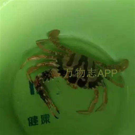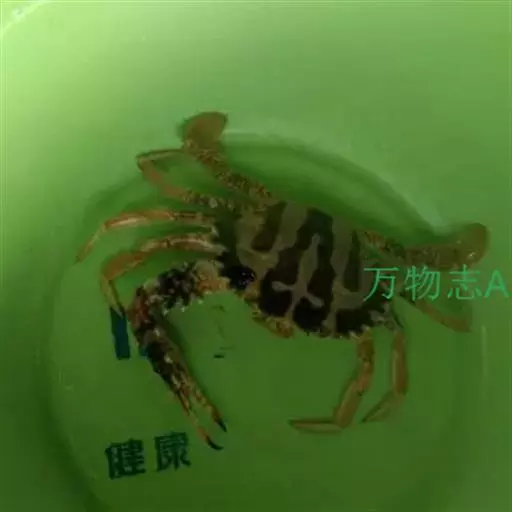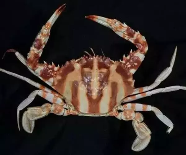 体色: 头胸甲红棕色,具黄色条纹,而中部前方则有一黄色十字交叉纹。螯脚红色并布有黄色斑纹,二指前端为深啡色。